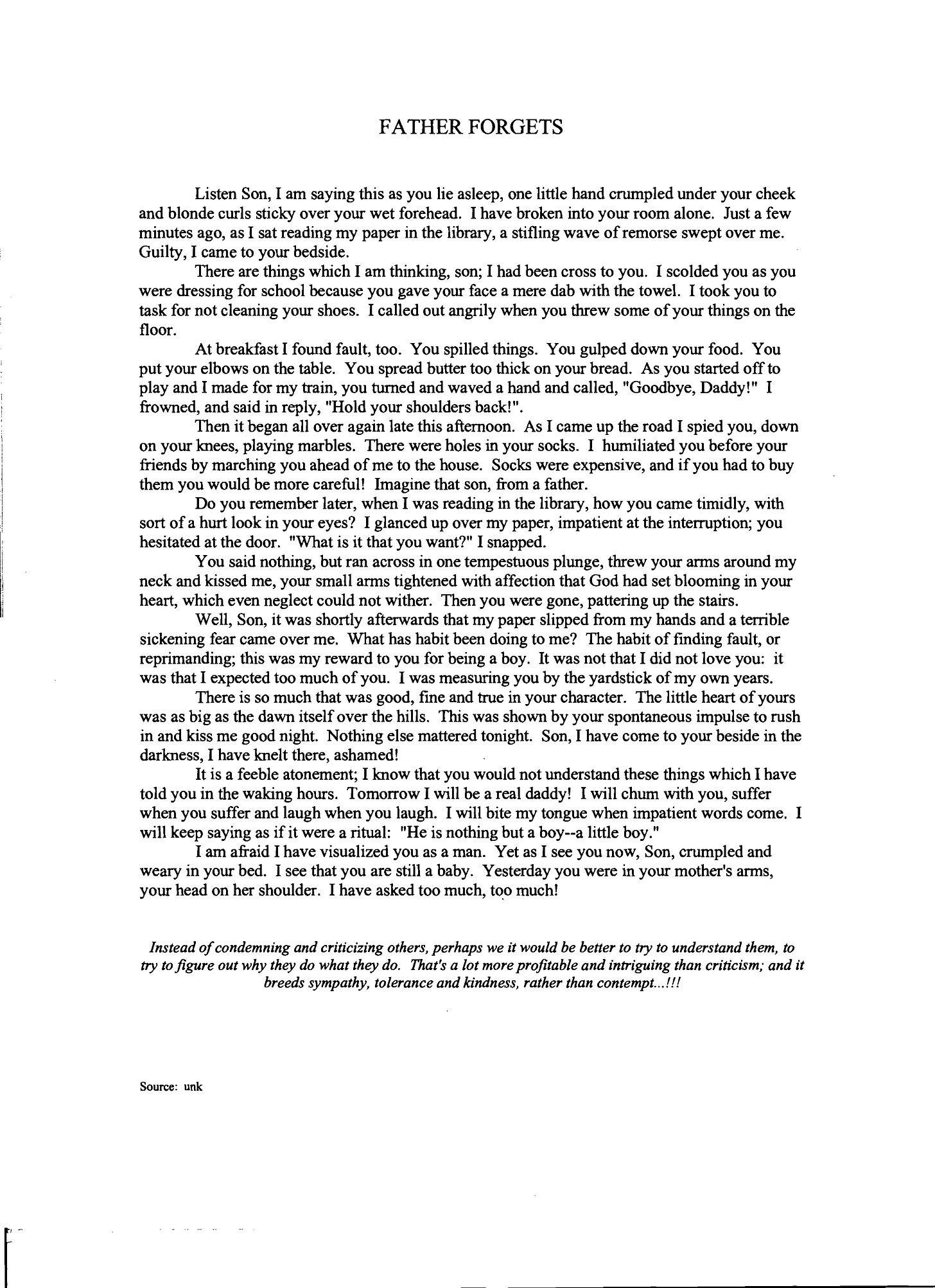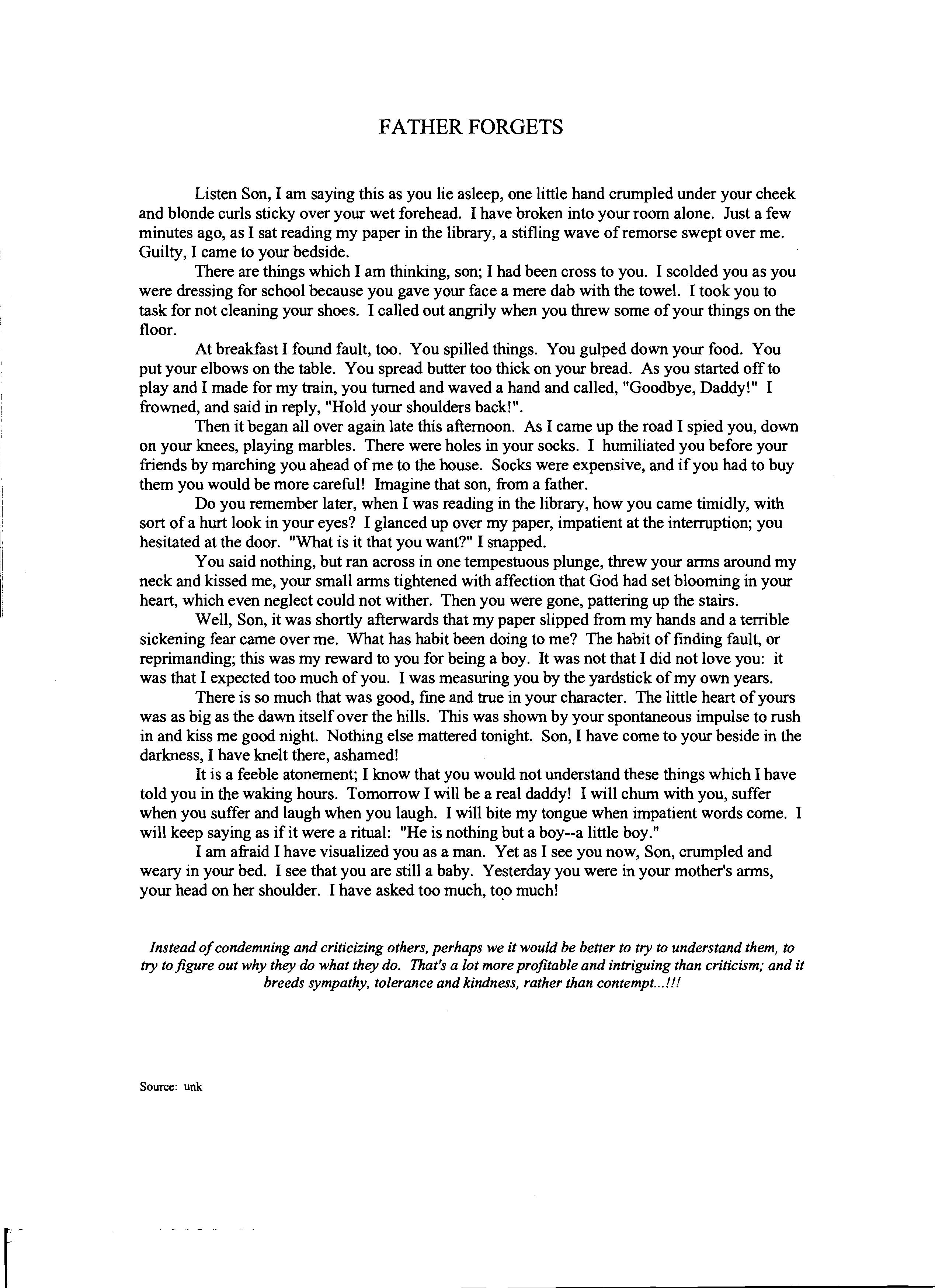 Father's DayJoshJun 16, 2024ShareIn honour of Father’s Day, I just wanted to share a piece that I recently came across in How To Win Friends And Influence People, By Dale Carnegie. The piece is a poem by W. Livingston entitled Father Forgets. Enjoy.Happy Father’s Day